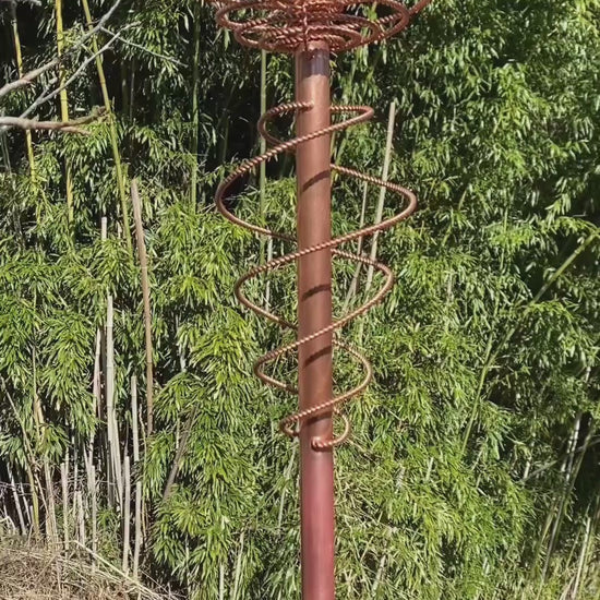 Handcrafted with intention, this Caduceus is forged from pure copper pipe and wire, a conductor of energy revered for its healing properties. The twin serpents entwine gracefully, directing the flow of energy, culminating below the undulating toroidal wings, crowned with a luminous quartz sphere, a stone of amplification and clarity also featured in three available variations at the base. Designed for holistic healing, vibrational therapy, and spiritual attunement, this piece serves as both a powerful tool and a striking altar artifact. Hang it from fishing line and be mesmerized by the spiraling coils rising and falling as it transforms the energy of your space.