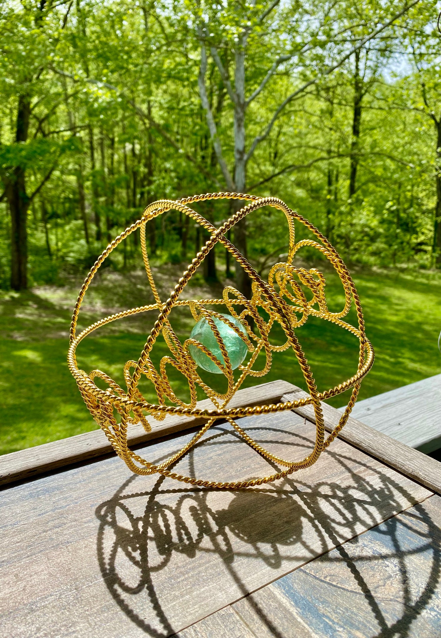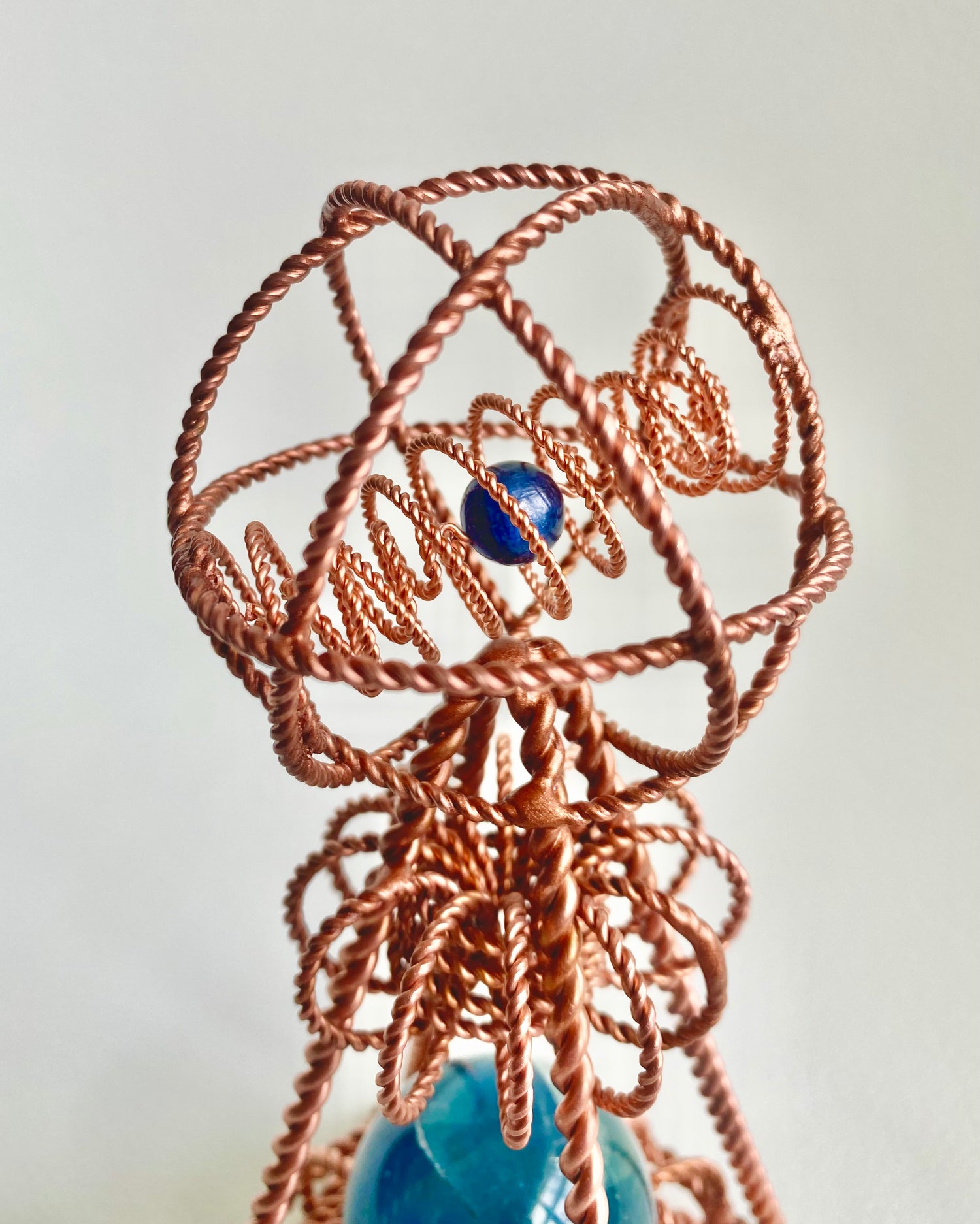 Ideal for homes, offices, gardens, and farms, the 8-inch copper OmniCore can be used as a hands-on meditative tool, an advanced scalar-wave ElectroCulture antenna, a decorative feng shui centerpiece, or suspended from a rotating mobile with fishing line. It can also be connected to an audio frequency generator and grounding cord to unlock its various potentials. The energetic field generated by the device extends to a radius of 3,500 feet. Handcrafted with electrical-grade copper wire and high-quality gemstones for maximum benefit.